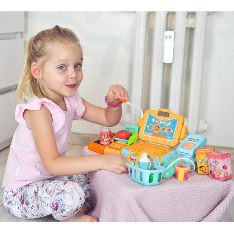 Kasa Sklepowa z wieloma dodatkami od Woopie to idealny pomysł dla dzieci powyżej 3 roku życia. Zabawka rozwija wyobraźnię dzieci i zachęca je do kreatywnego myślenia. Dzieci mogą ważyć owoce i warzywa, a następnie wbić je za pomocą klawiatury do komputera. Przy pomocy czytnika zeskanują paczkę ciasteczek lub butelkę wody. Następnie będą mogły zapłacić na dwa sposoby: tradycyjnie za pomocą pieniążków, karty płatniczej. Wszystko to jest dołączone do zestawu i zapewni dziecku długie godziny fajnej zabawy.