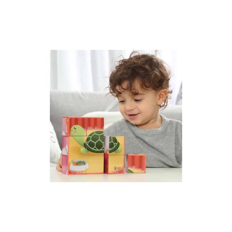 Puzzle Bloki od Classic World to idealny sposób na ćwiczenie koncentracji i logicznego myślenia u dziecka już od 10 miesiąca życia! Zestaw zawiera 9 klocków. Dzięki temu, że klocek ma z każdej ściany inny fragment układanki może powstać, aż 6 różnych obrazków zwierząt. Całość wykonana z drewna i pomalowana nietoksycznymi farbami bezpiecznymi dla dzieci i środowiska.
