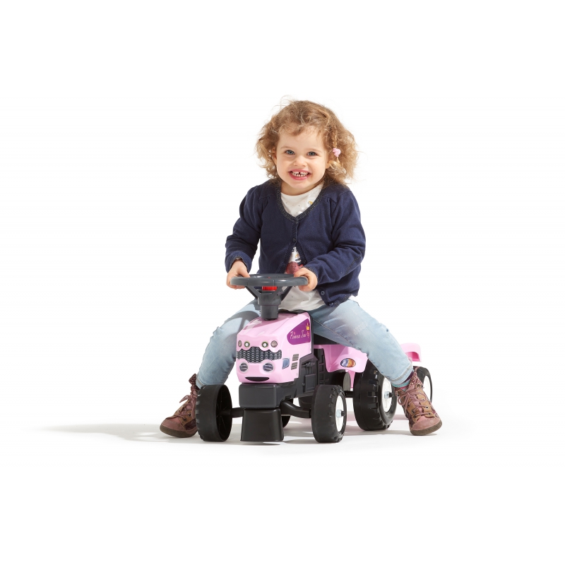 Traktorek Jeździk Baby Princess z przyczepką marki Falk to spełnienie marzeń niejednego małego traktorzysty. Starannie wykonany, z dbałością o najmniejszy szczegół! Żaden prawdziwy Farmer by takim nie pogardził. Pojazd wykonany z najwyższej jakości tworzywa przeznaczony dla dzieci od 12 miesiąca życia. Pojazd jest wyposażony odpinaną przyczepę z panelami oraz kierownicę z klaksonem. Koła traktorka zostały wykonane z wysokiej jakości plastiku.
