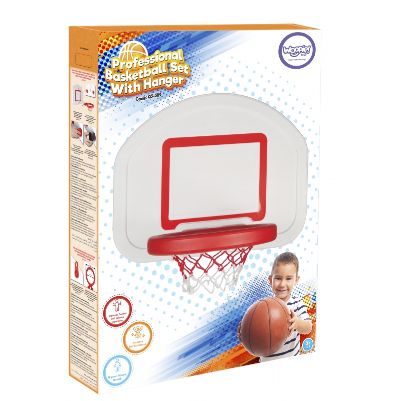 Klasyczna Koszykówka Wisząca marki Woopie jest idealnym miejscem dla ćwiczeń małego sportowca! Koszykówka posiada obręcz dla standardowych rozmiarów piłek, co zachęci Twoje dziecko do uprawiania sportu i do w pełni wartościowe miejsce do ćwiczeń rzutów. Gra w "kosza" dostarcza wielu korzyści twojemu dziecku, rozwój tzw. dużej motoryki podczas aktywności. Wielkim plusem jest to, że produkt łatwo można przenieś z dowolnego, a ponadto może być używany zarówno w domu jak, i na zewnątrz - Twoje dziecko może grać wszędzie!