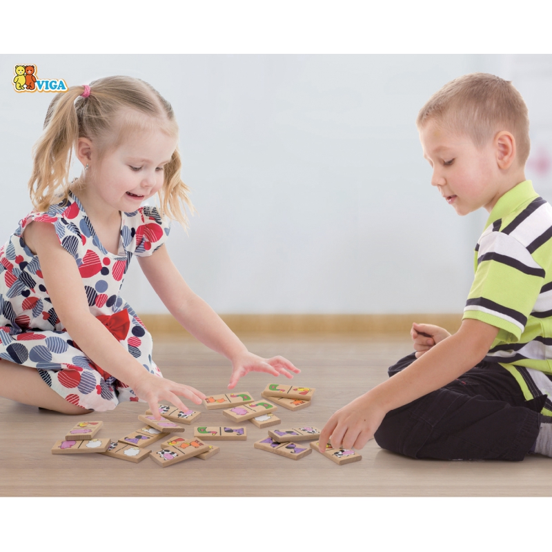 VIGA Drewniane Klocki GRA DOMINO Zestaw Zwierzątka 28 Elementów