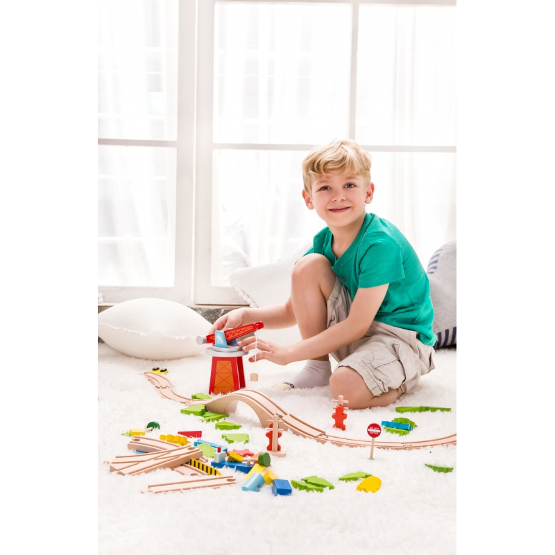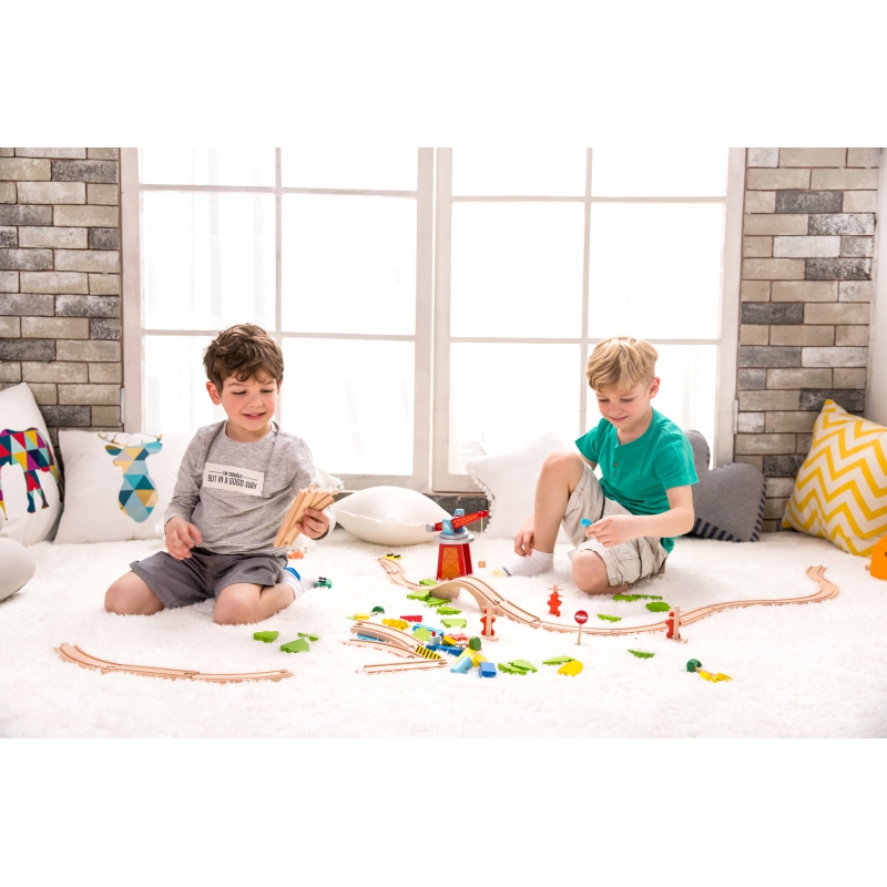 • Zestaw zawiera kolejki, tory, budynki, drzewa, pojazdy, ludziki i wiele innych!