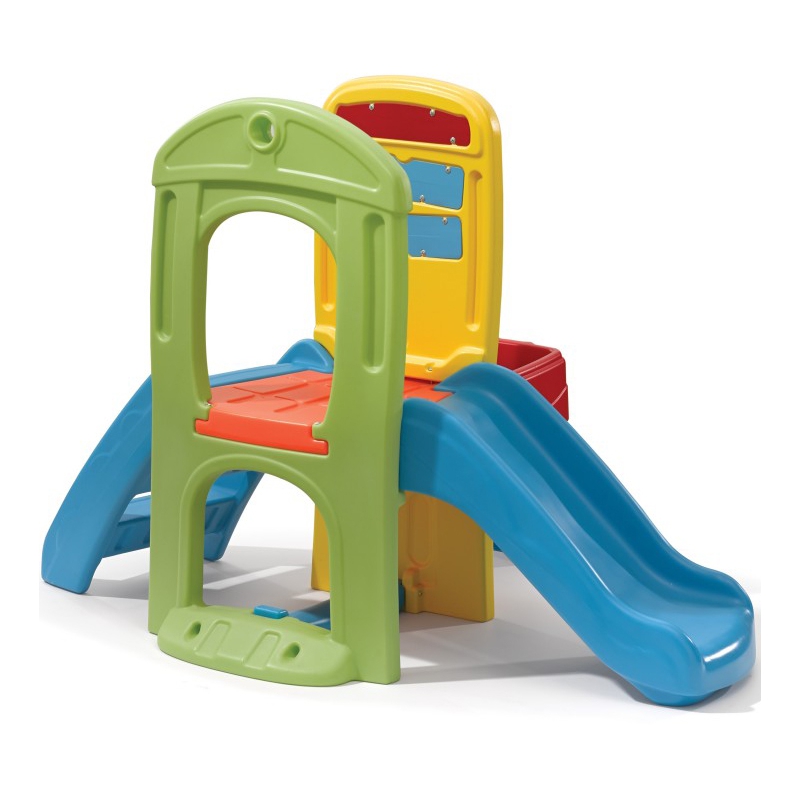 • - przestrzeń pod zjeżdżalnią będzie idealnym miejscem do przechowywania zabawek lub nowym miejscem do ukrycia się w zabawie " w chowanego",