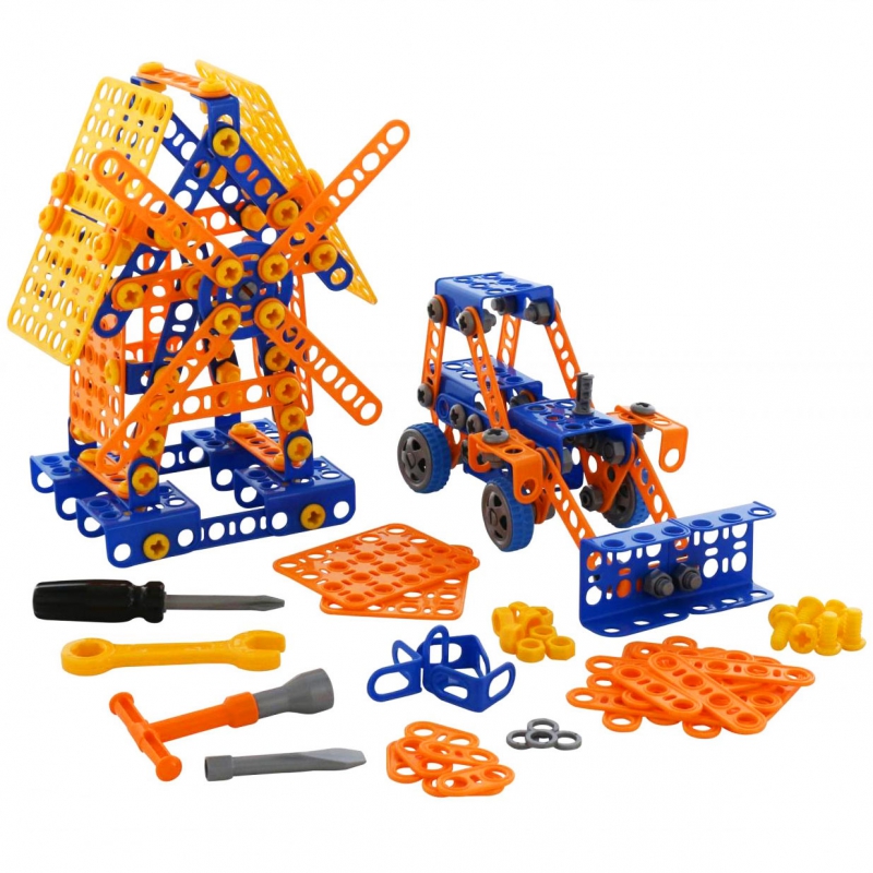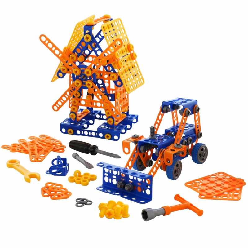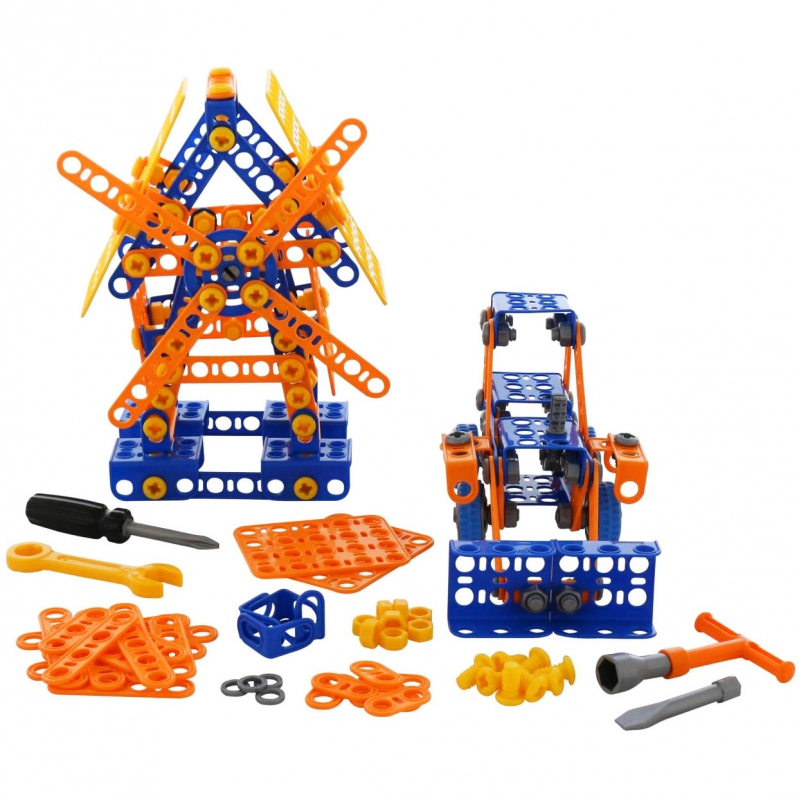 klocki konstrukcyjne-zbuduj niezwykłe pojazdy a nawet młyn. Produkt bezpieczny dla najmłodszych dzieci. Zabawkę cechują łatwe i proste w konstruowaniu elementy. Zabawka wyróżnia się świetnym wykonaniem i dużą wytrzymałością.Pobudzają kreatywność oraz doskonale rozwijają zdolności manualne najmłodszych.W sumie aż 330 elementów konstrukcyjnych,dzięki którym mały konstruktor może stworzyć wiele ciekawych urządzeń. Za ich pomocą można zbudować młyn,koparkę i wiele innych konstrukcji zależnych od wyobraźni dziecka. Realistyczne wyposażenie na pewno zapewni długą wspaniałą zabawę.